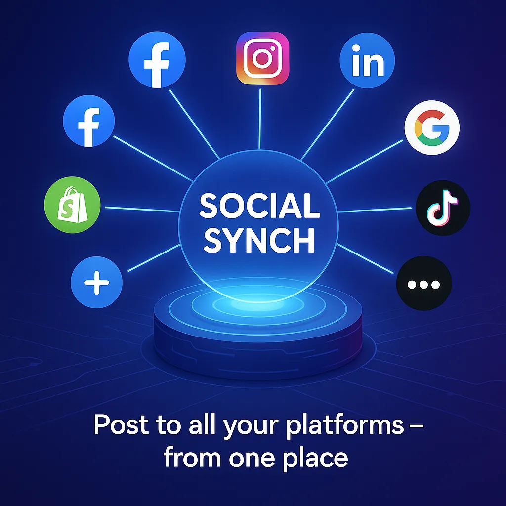 With Social Synch, you plug in your favorite platforms once and control them all from one place. Connect Facebook, Instagram, LinkedIn, YouTube, Google, TikTok, Shopify, Slack and more—then create a post one time and publish it everywhere in a few clicks. No more logging in and out, copy-pasting captions, or missing messages.